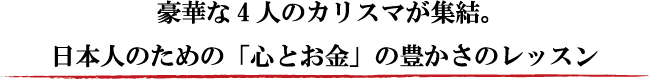 なんとこの4人のカリスマの話がタップリ聴けて、学べて…