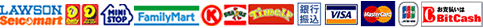 お支払方法 銀行振込、クレジットカード、コンビニ決済、BitCash、ゆうちょ銀行